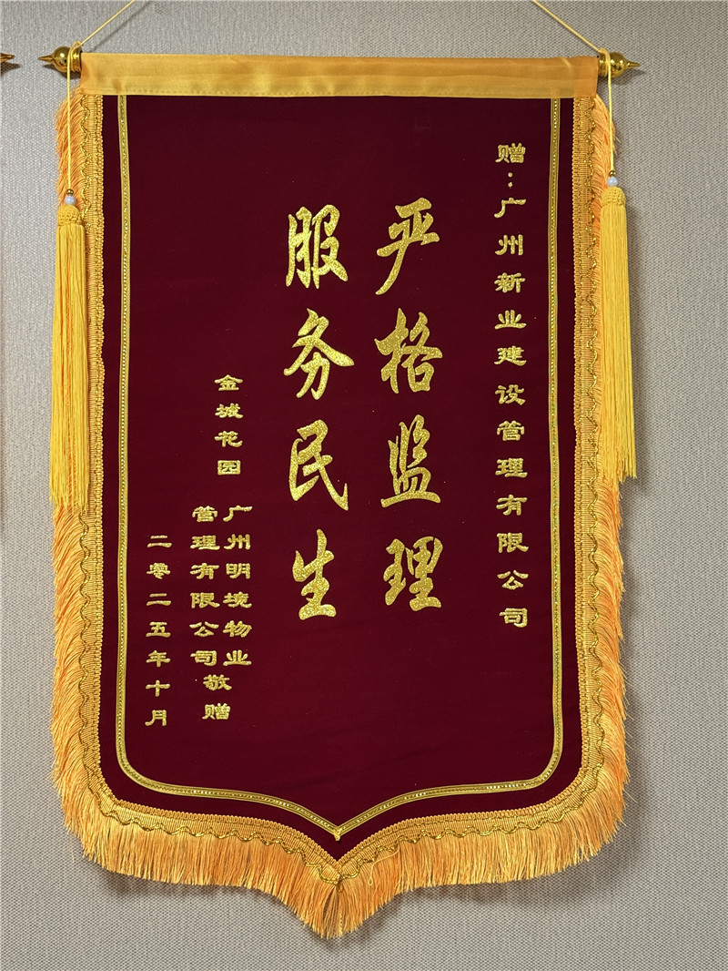 嚴(yán)格監(jiān)理,服務(wù)民生。祝賀:廣州新業(yè)公司監(jiān)理的金城花園項目獲得錦旗!